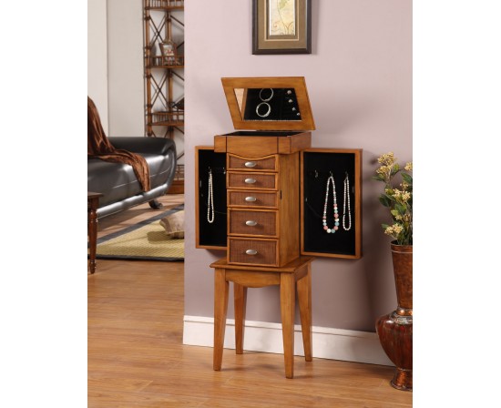 Raffia Palm Woven 5 Drawer Jewelry Armoire