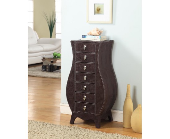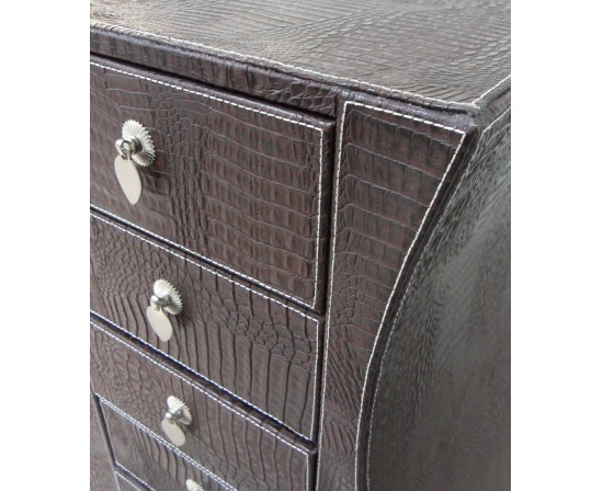 Wrapped in the finest artificial crocodile leather, this one of a kind piece gives the final touches to any room. With 7 spacious felt lined drawers, you are sure to store all your precious items in side for years to come.
